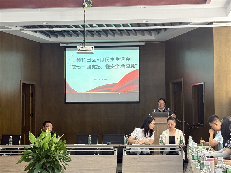 为庆祝中国共产党成立104周年,6月30日下午,鑫和园区6月民主生活会在郫都鑫和工业园一楼党工服务中心培训室举行,本次活动由中共成都市经济和信息化新经济行业委员会指导、成都市中小企业服务中心(成都市工业合作联社)主办、四川鑫和工业园承办,活动主题:“庆七一.强党纪,懂安全.会应急”。鑫和工业园总经理杨锐、新都园区总经理杨德均、广汉园区总经理薛建、各园区党支部书记、工会主席以及党员职工代表等40余人参加了此次活动。