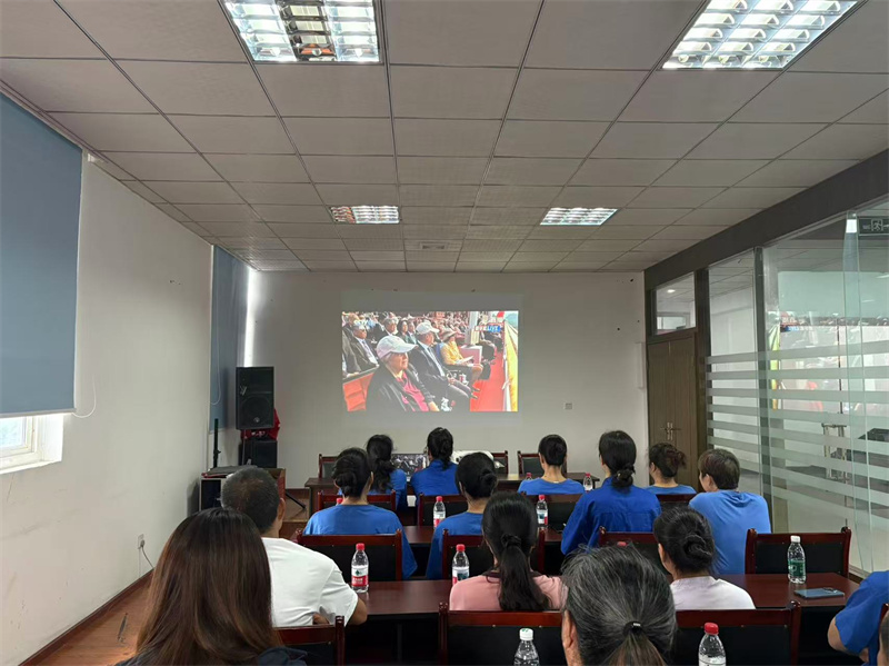 为弘扬爱国主义精神,凝聚发展信心,激发干事创业热情,9月3日上午9时,中国人民抗日战争暨世界反法西斯战争胜利80周年阅兵式准时拉开帷幕。鑫和各园区在党支部带领下,联合园区工会共同组织职工集中观看直播,共同见证历史时刻、汲取奋进力量。
