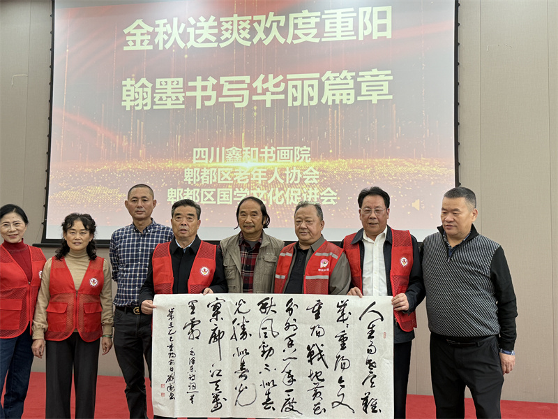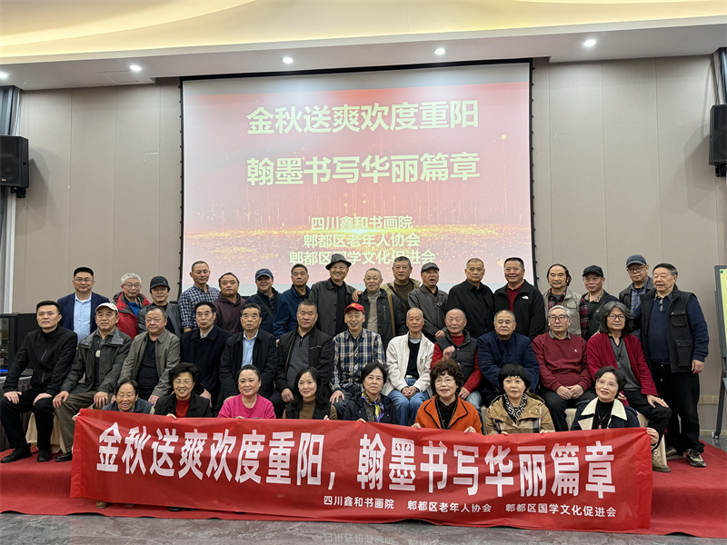 岁岁重阳,今又重阳!值此重阳佳节来临之际,10月28日下午,由四川鑫和书画院&郫都区老年人协会&郫都区国学文化促进会联合举办的“金秋送爽欢度重阳,翰墨书写华丽篇章”重阳节主题活动在三道堰镇古城317田园艺术公社隆重举办。四川鑫和实业董事长、四川鑫和书画院名誉院长杨德兵、四川鑫和书画院及国学文化促进会的老师们、部分老领导及特邀嘉宾等共计50余人出席了本次活动。