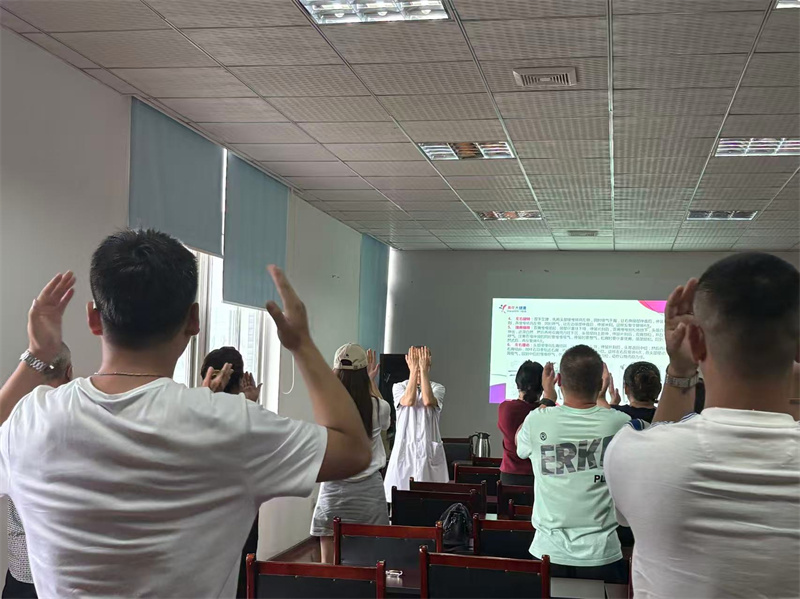 最后,李老师为大家破解了 “久坐困局”。他分析了“久坐”对颈椎、腰椎及心血管系统的危害,并现场示范教学办公室颈椎放松动作操(从简单的头部绕环、肩颈拉伸)。现场鑫和员工们纷纷起身跟随李老师练习,大家沉浸式体验肩颈拉伸运动带来的身体放松,有效缓解了久坐带来的身体不适。
