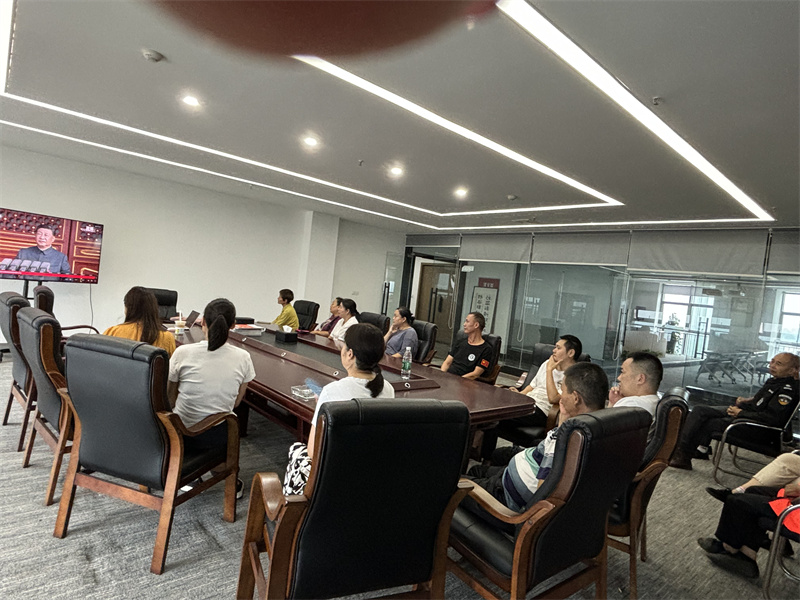 为弘扬爱国主义精神,凝聚发展信心,激发干事创业热情,9月3日上午9时,中国人民抗日战争暨世界反法西斯战争胜利80周年阅兵式准时拉开帷幕。鑫和各园区在党支部带领下,联合园区工会共同组织职工集中观看直播,共同见证历史时刻、汲取奋进力量。